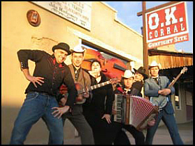 | Wo früher Holzfäller und Flößer lebten, da trifft man auch noch in unserer Zeit verwegene Gesellen: ”DEVILS & SOEHNE” nennen sich die Musiker, die in dem Schwarzwaldstädtchen Calw zusammengefunden haben. Wenn die Band mit ihrem fetzigen Western-Swing loslegt, dann kommt es schon mal vor, dass Gäste zum Tanzen auch auf die Tische steigen. |